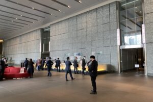 そのビルで働いてるサラリーマンがお客さんを出迎えて挨拶して名刺交換とかもしてたりするわけですよ。普通に僕らの数メートル横とかで。